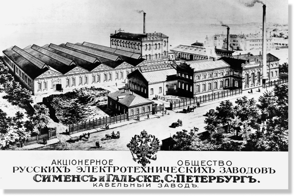 Завод основал в 1879 году немецкий промышленник Вернер Сименс как мануфактуру торгового дома «Сименс и Гальске». Предприятие производило лампы, кабели и переключатели. Компания участвовала в электрификации Петербурга: осветила театры, торговые пассажи, Невский проспект и Зимний дворец по специальному заказу императора. В 1918 году завод национализировали, он получил нынешнее название и внёс значительный вклад в электрификацию СССР.