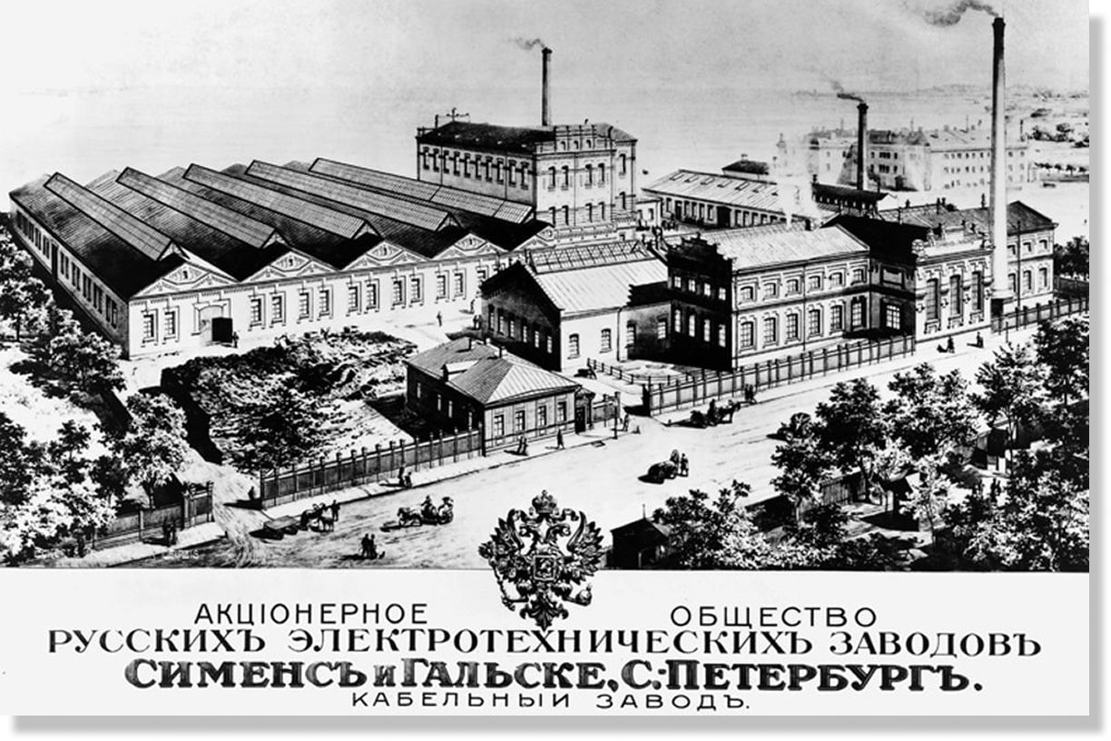 Завод основал в 1879 году немецкий промышленник Вернер Сименс как мануфактуру торгового дома «Сименс и Гальске». Предприятие производило лампы, кабели и переключатели. Компания участвовала в электрификации Петербурга: осветила театры, торговые пассажи, Невский проспект и Зимний дворец по специальному заказу императора. В 1918 году завод национализировали, он получил нынешнее название и внёс значительный вклад в электрификацию СССР.